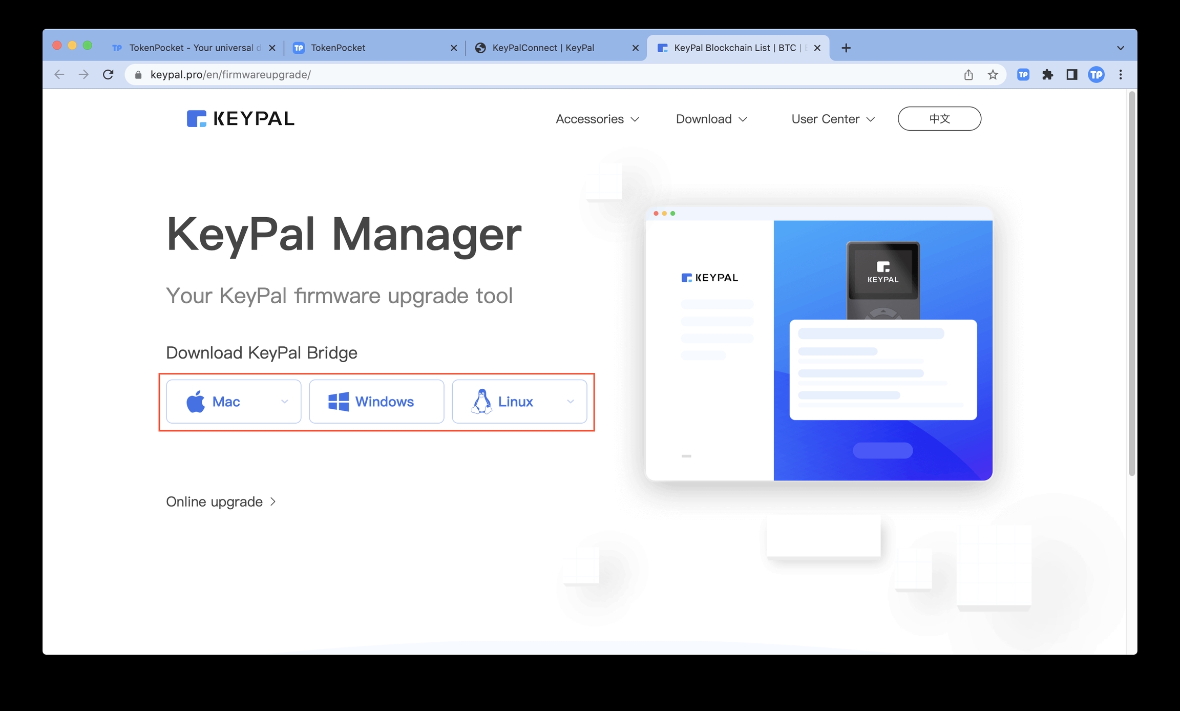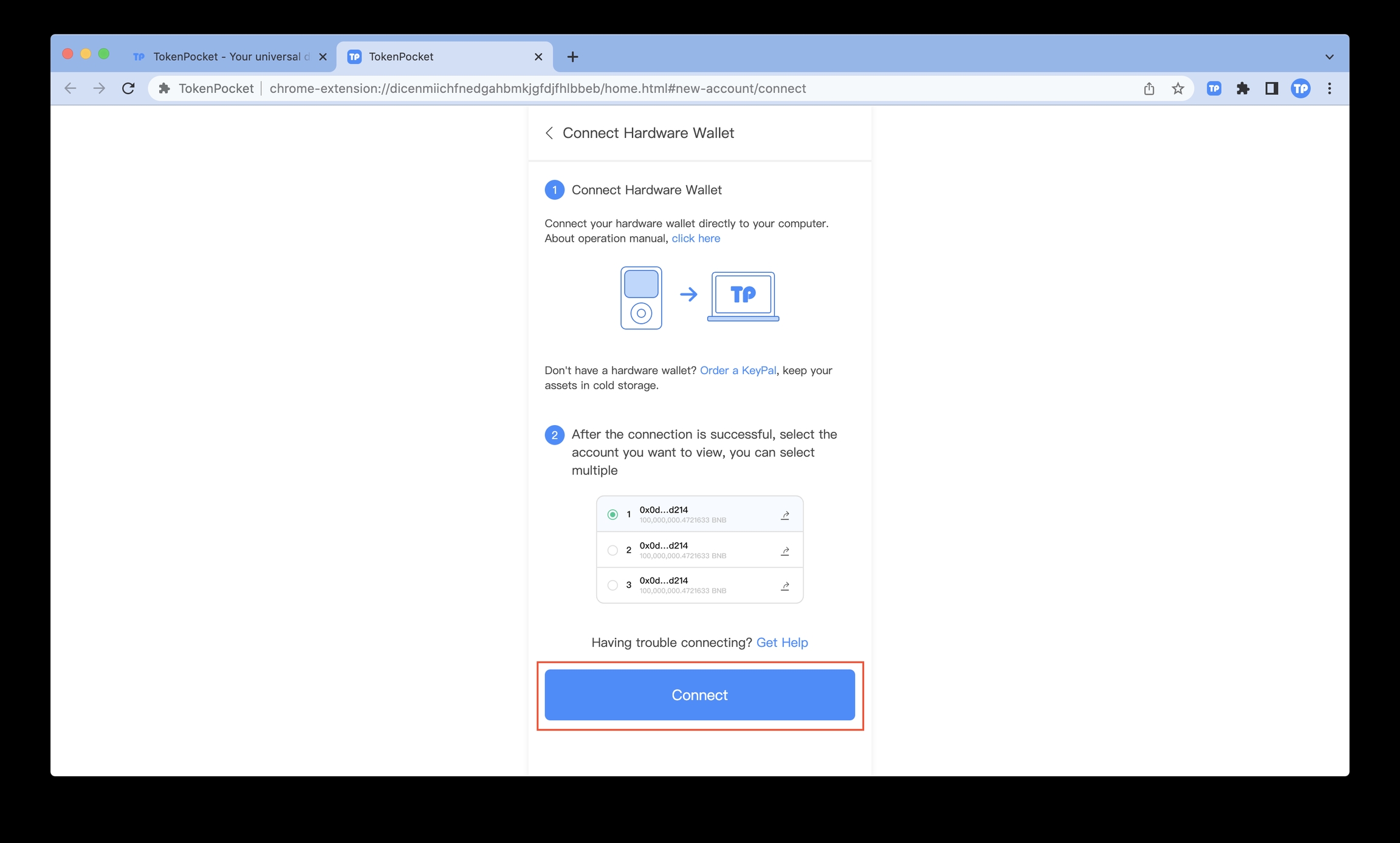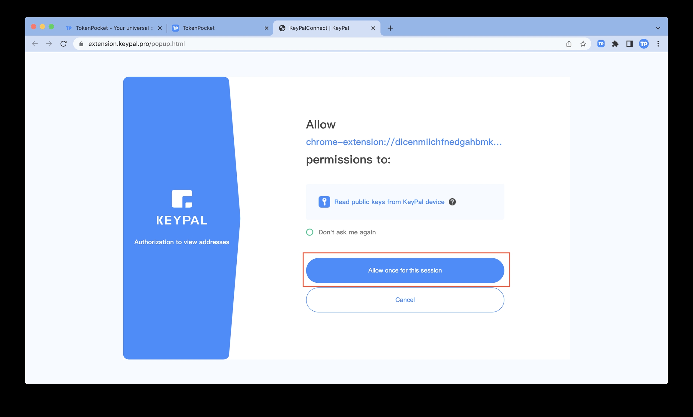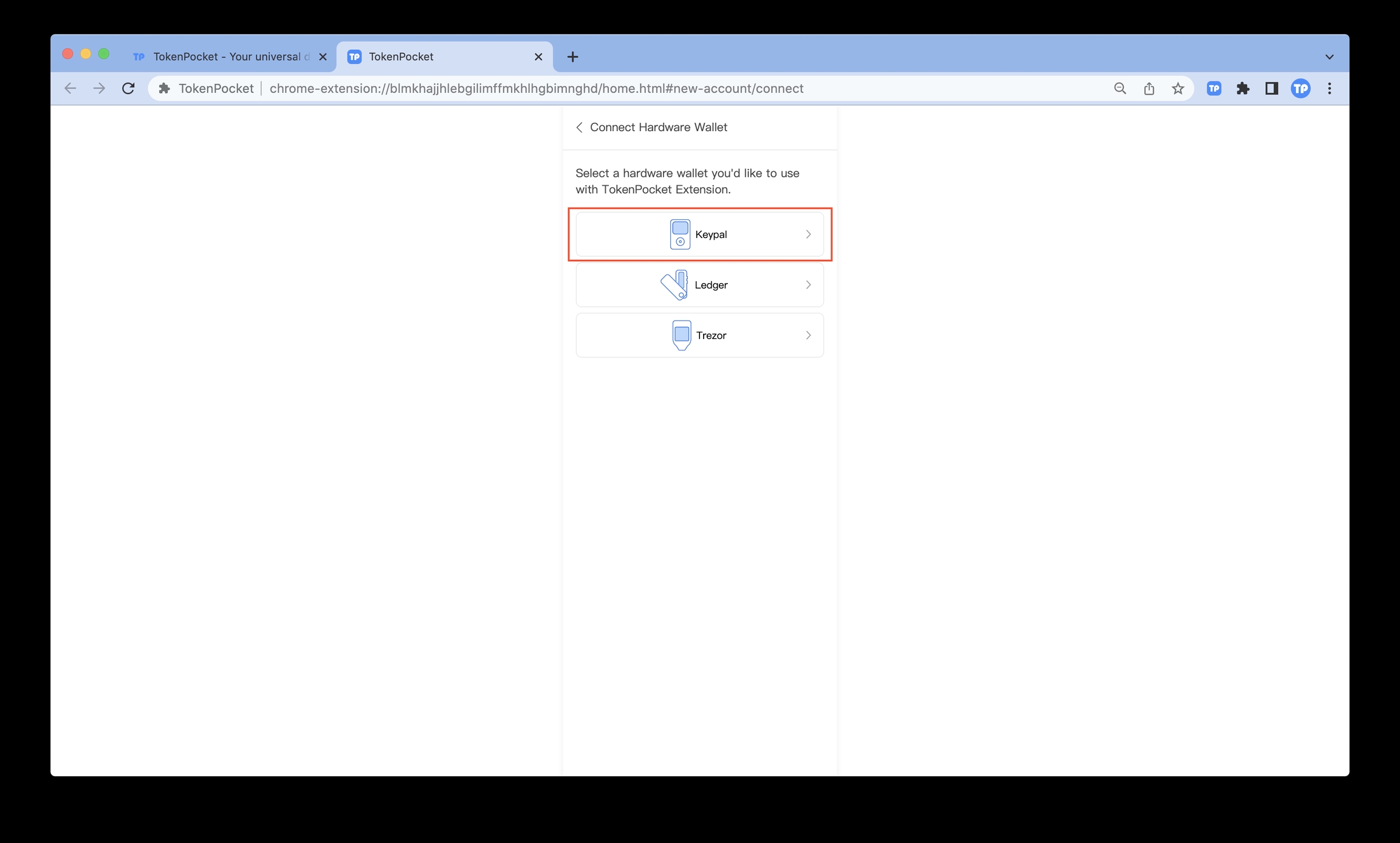 TokenPocket extension wallet (1.1.4) has already supported users to connect to the KeyPal hardware wallet.
